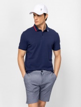 Men's short-sleeved polo shirt with a regular fit and button-collar neck. There is a small brand logo on the collar. Material: 100% cotton, pique. The model is 188 cm tall and wear