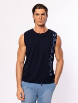 Men's tank top with a comfortable fit, crew neck, wider shoulder, basic colours, large printed branding on the front, woven label on the side. Material: 100% cotton, single jersey.