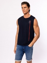 Men's tank top with a comfortable fit, crew neck, wider shoulder, basic colours, printed branding on the front, woven label on the side. Material: 100% cotton, single jersey. Model