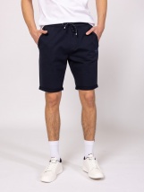 Men's cotton shorts, drawstring adjustable, elasticated waist, straight pockets, patch pocket on the back, small printed brand logo on the front, high cotton content. Material: 80%