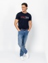 Men's jeans with a classic 5-pocket design, zip closure, slim fit cut, the belt is not included with the pants. Material: 83% cotton, 16% polyester, 1% elastane. The model is 188 c