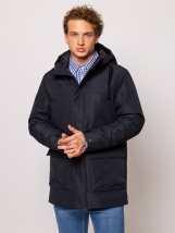 Men's winter jacket in waterproof fabric, with taped seams, quilted lining, two-way adjustable fixed hood, adjustable sleeve cuffs, zip fastening, inside and outside wind flaps. Front with multi-functional large patch pockets, inside zipped inner pocket, small leather embossed branding on sleeve. Material: shell: 100% polyester, lining: 100% polyester, padding: 100% polyester. Water resistance: 10000 mm/24h, breathability: 2000 gr/m2/24h. The model is 188 cm tall and wears size L.
