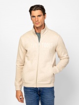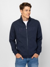 Men's zip-up stand collar sweatshirt with classic fit, straight pockets, ribbed trim at cuffs and bottom, embroidered branding at front. Material: 57% cotton, 43% polyester, inside