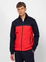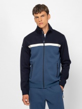 Men's zip-up stand collar sweatshirt with a sporty fit, ribbed trim at cuffs and bottom, zipped pockets, small printed branding on front and back. Material: 80% cotton, 20% polyest