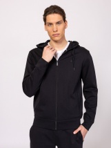 Men's zip-up hoodie with a comfortable fit, welt pockets, pure cotton fabric, printed branding on the front and sleeves. Wear with our ZIBOR sweatpants. Material: 100% cotton, interlock. The model is 188 cm tall and wears size L.