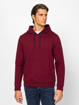 Men's overhead hoodie with a sporty fit. Features kangaroo pockets, ribbed cuffs and hem, small printed branding on the front, and a woven label on the side. Material: 70% cotton,