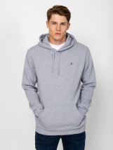 Men's overhead hoodie with a classic cut, with a kangaroo pocket, ribbed cuffs and hem, small printed logo on the front. Material: 80% cotton, 20% polyester, inside brushed fleece. The model is 188 cm tall and wears size L.