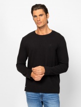 Men's long-sleeved T-shirt in ribbed fabric, crew neck, ribbed cuffs, pure cotton fabric, small printed brand logo on front, woven label on bottom. Material: 100% cotton, ribbed je