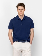 Men's short-sleeved polo shirt, with regular fit cut, and buttoned-collar neck, small metal brand logo on the front. Material: 100% cotton, pique. The model is 188 cm tall and wears size L.