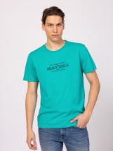 Men's short-sleeved T-shirt with straight cut, crew neck, large printed tone-in-tone branding on the front. Material: 100% cotton, single jersey. The model is 188 cm tall and wears