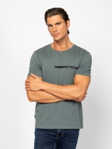 Men's short-sleeved T-shirt with straight cut, crew neck, printed branding on the front and woven label on the side. Material: 100% cotton, single jersey. The model is 188 cm tall