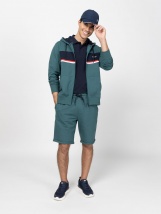 Men's jogging shorts with an elastic and drawstring waist. Material: 80% cotton, 20% polyester, thin French Terry. The model is 188 cm tall and wears size M.