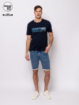 These men's shorts are Heavy Tools' stylish 5-pocket, zipped denim shorts. A great choice for busy weekdays, outings or a casual evening out. With its regular fit, trendy colours, drawstring waist and small branding, it's a true staple of the season. Thanks to the elastic cotton fabric, it offers a high level of comfort. Material: 72% cotton, 26% polyester, 2% elastane, denim. The model is 188 cm tall and wears size M.