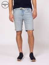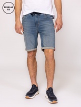 Men's denim shorts with regular fit, classic five pocket design, zip fastening, elasticated waist and drawstring with small woven branding on the medallion. In classic colours, made from elastane-blended cotton fabric for a high level of comfort. Made of 78% cotton, 2% elastane, the model is 188 cm tall and wears size M. The belt is not included.