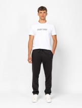 Men's sweatpants with a comfortable fit, tapered leg, drawstring adjustable, elasticated waist, pockets, breathable fabric, small brand logo on the front. Material: 80% cotton, 20% polyester, inside brushed fleece. The model is 188 cm tall and wears size M.
