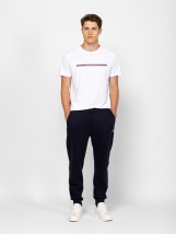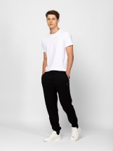 Men's sweatpants with a comfortable fit, with a ribbed leg, drawstring adjustable elasticated waist, side pockets, back zip pocket, ventilated fabric, small brand logo on the front. Made of 76% cotton, 19% polyester, 5% elastane, the model is 188 cm tall and wears size M.