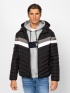 Men's quilted hooded jacket with a comfortable sporty cut, fixed adjustable hood, inner wind flap, zipped pockets, zipped inner pocket, small brand logo on the sleeve. Material: sh... More info
