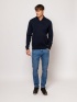 Men's fine knitted sweater in trendy colours, classic cut, with a stylish scarf collar, made of pure cotton fabric, rib knit cuffs and bottom, with a small leather branding at the ... More info