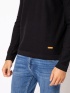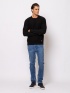 Men's fine knit sweater with classic cut, crew neck and small brand logo at the bottom front. Material: 100% cotton, knitted fabric. The model is 188 cm tall and wears size L.