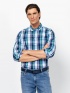 Men's shirt with comfort fit cut, long sleeves, button-down collar. Checked pattern, made from comfortable and stretchy material. Material: 97% cotton, 3% elastane. The model is 18