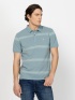 Men's short-sleeved polo shirt, regular fit cut, and buttoned-collar neckline. Made from striped fabric, with a small brand logo on the front. Material: 100% cotton, pique. The mod