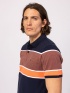 Men's polo shirt in striped fabric with classic cut, side slit, elegant button and collar fastening, small woven branding on the front and side. The bottom of the sleeve ends in a rib for comfort. Material: 100% cotton, pique. The model is 188 cm tall and wears size L.Less info