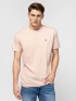 Men's short-sleeved T-shirt with a straight cut, crew neck, small printed logo on the front. Material: 100% cotton, single jersey. The model is 188 cm tall and wears size L.