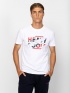 Men's short-sleeved T-shirt with a straight cut and crew neck, featuring a large printed logo on the front. Material: 100% cotton, single jersey. The model is 188 cm tall and wears size L.Less info