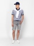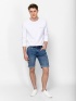 Men's denim shorts with a 5-pocket Bermuda style, zip closure, and regular fit cut. The belt is not included with the shorts. Material: 72% cotton, 26% polyester, 2% elastane. The