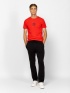 Men's sweatpants with a comfortable fit, straight legs, drawstring waist, elastic waistband, side pockets, fake back pocket, breathable fabric, and small woven brand label on the front. Material: 80% cotton, 20% polyester, brushed fleece lining. The model is 188 cm tall and wears size M.Less info