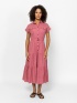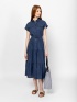 Women's canvas dress, with ankle-length, gathered skirt and button closure. Adjustable waist with a belt, short sleeves, dropped shoulders, and a front patch pocket with a flap. Material: 65% cotton, 35% viscose. The model is 175 cm tall and wears a size S.