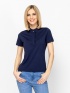 Women's short-sleeve T-shirt with a slim fit cut, ruffled neckline, and button placket. There is a small metal brand logo on the back. Material: 50% cotton, 50% modal, single jerse