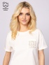 Women's short-sleeved T-shirt with a wider cut, round neckline, sleeves with lapels and rhinestone branding on the front pocket. Made from a premium cotton yarn for a soft feel, wi