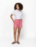 Women's shorts with a looser fit, mid-thigh length, front and back pockets. Elastic, tie waist, linen-effect material. Material: 65% cotton, 35% viscose. The model is 175 cm tall and wears a size S.