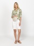 Women's shorts, with a regular fit cut, above-knee length, made of linen-effect material. Elastic waistband, fake pocket at the back. Material: 65% cotton, 35% viscose. The model i