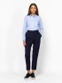 Women's trousers with tapered leg, comfortable elasticated waist, straight pockets, edge ironing, small metal branding on the front, easy to handle fabric. Material: 95% polyester, 5% elastane. The model is 175 cm tall and wears size S.