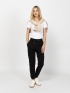Women's jogging pants with a regular fit, rubberised cuffs, adjustable waist, and side pockets. Material: 58% cotton, 38% polyester, 4% elastane, French terry. The model is 175 cm