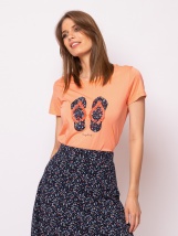 This women's short-sleeve T-shirt with its bright colours, straight cut, crew neck, exciting printed ruffled decoration and small brand markings looks great on all shapes. Made fro