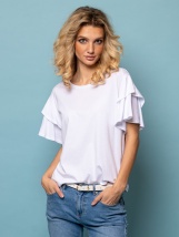 If you're in the mood for romance, choose this women's T-shirt ! With its straight cut, ruffle sleeves, soft cotton blend fabric and small branding, it will make your look fun and stylish. Material: 50% cotton, 50% modal, single jersey. The model is 175 cm tall and wears size M.