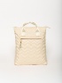 Women's backpack with one compartment, zipper closure, inner pocket, padded back, adjustable shoulder straps, metal brand logo on the front, made of decorative quilted material. Vo