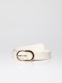 Women's belt, oval buckle, logo pattern. Material: 100% polyurethane, size: total length of the belt: 102 cm, width: 2,8 cm.