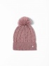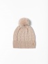 Women's knitted hat with a twisted knit pattern, made from a comfortable wool blend fabric, with tiny sequins, a decorative pompom and a small metal brand logo on the side. Materia... More info