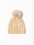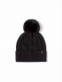 Women's knitted hat with decorative stitching and pompom, with small woven brand label on the side. Material: 100% acrylic.