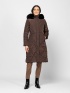 Women's quilted winter coat with feminine silhouette, knee-length, outer wind flap, detachable hood with faux fur trim, front hidden zipped pockets, small metal branding on sleeve ... More info
