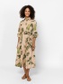 Women's shirt dress with 3/4 sleeves, ankle-length, and button closure. Adjustable waist with a belt, side pockets, and a small branding on the back. Material: 65% cotton, 30% poly