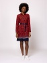 Women's shirt dress with straight cut, above knee length, decorative collar, buttoning, belted waist, exciting patterns, easy to handle fabric, small metal branding on the back. Material: 100% viscose. The model is 175 cm tall and wears size S.Less info