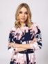 Women's shirt dress with straight cut, above knee length, decorative collar, buttoning, belted waist, exciting patterns, easy to handle fabric, small metal branding on the back. Material: 100% viscose. The model is 175 cm tall and wears size S.Less info