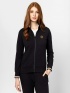 Women's zip-up sweater with a stand collar, slim fit, ribbed hem and cuffs, straight pockets, high cotton content fabric, small embroidered logo on the front. Decorative stripes at the bottom of the sleeves and on the inside of the collar. Material: 58% cotton, 38% polyester, 4% elastane, French terry. The model is 175 cm tall and wears size S.Less info