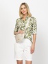 Women's long-sleeve blouse with a straight cut, made from patterned fabric. Material: 100% cotton. The model is 175 cm tall and wears a size S.