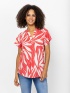 Women's short-sleeved blouse, straight cut, V-neck, made of patterned material. Material: 100% viscose. The model is 175 cm tall and wears size S.